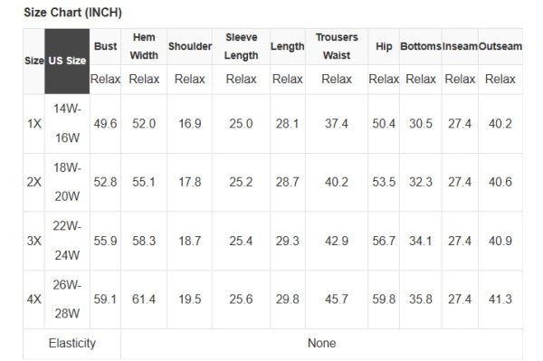 Plus Size Info: See size chart for approximate measurements