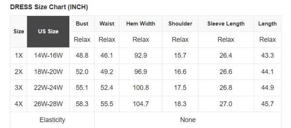 Plus Size Info: See size chart for approximate measurements